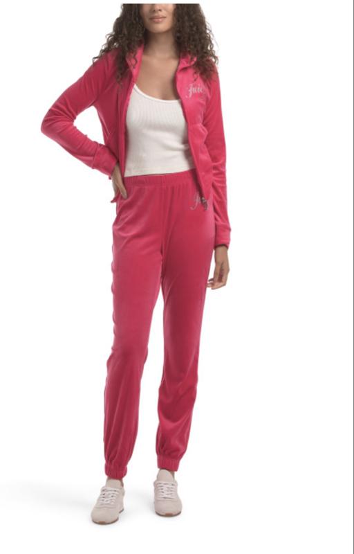 A peça é composta por blusa de manga longa com capuz e calça comprida de modelagem reta. O tecido em veludo tem toque macio e acabamento levemente acetinado, trazendo um ar elegante mesmo sendo um look despojado.
