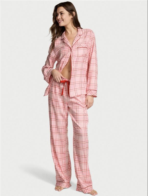 Conjunto de pijama feminino em algodão , da Victoria’s Secret, com visual clássico e aconchegante.